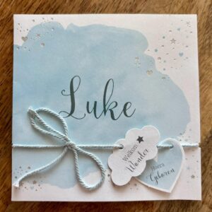 Hebben jullie nog een geboortekaartje over? Stuur het op of lever het in – en ontvang kosteloos een gepersonaliseerde naamsleutelhanger met de naam van jullie baby als bedankje.